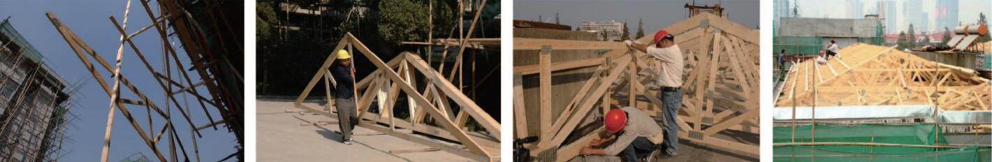 項(xiàng)目中將木桁架屋頂系統(tǒng)、木結(jié)構(gòu)預(yù)制墻體系統(tǒng)作為裝配式構(gòu)件,與新建混凝土裝配式建筑中結(jié)合使用。
